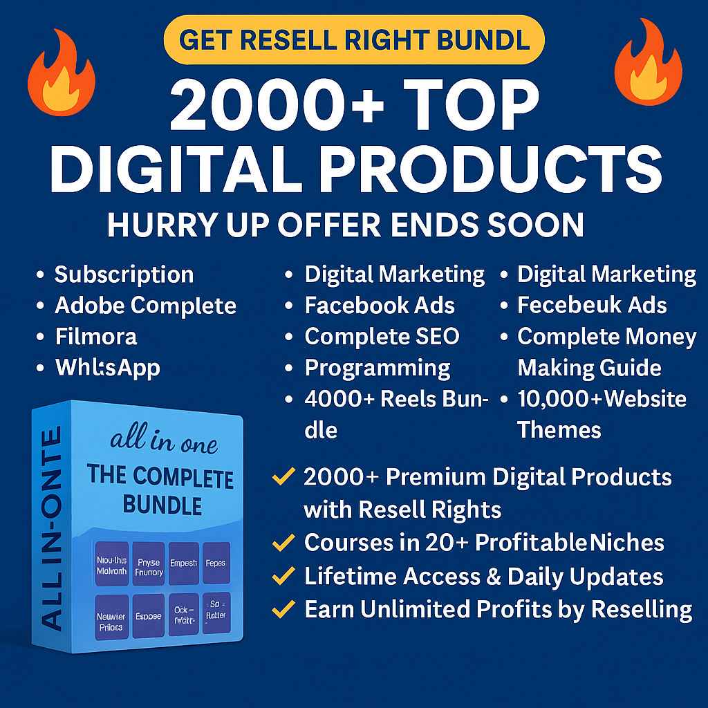 This bundle gives you access to 2000+ premium digital products, including courses, templates, software, marketing guides, themes, plugins, and more — all designed to help you grow your business or start reselling immediately. You’ll find tools for digital marketing, design, trading, freelancing, SEO, video editing, and more, with lifetime access and daily content updates.